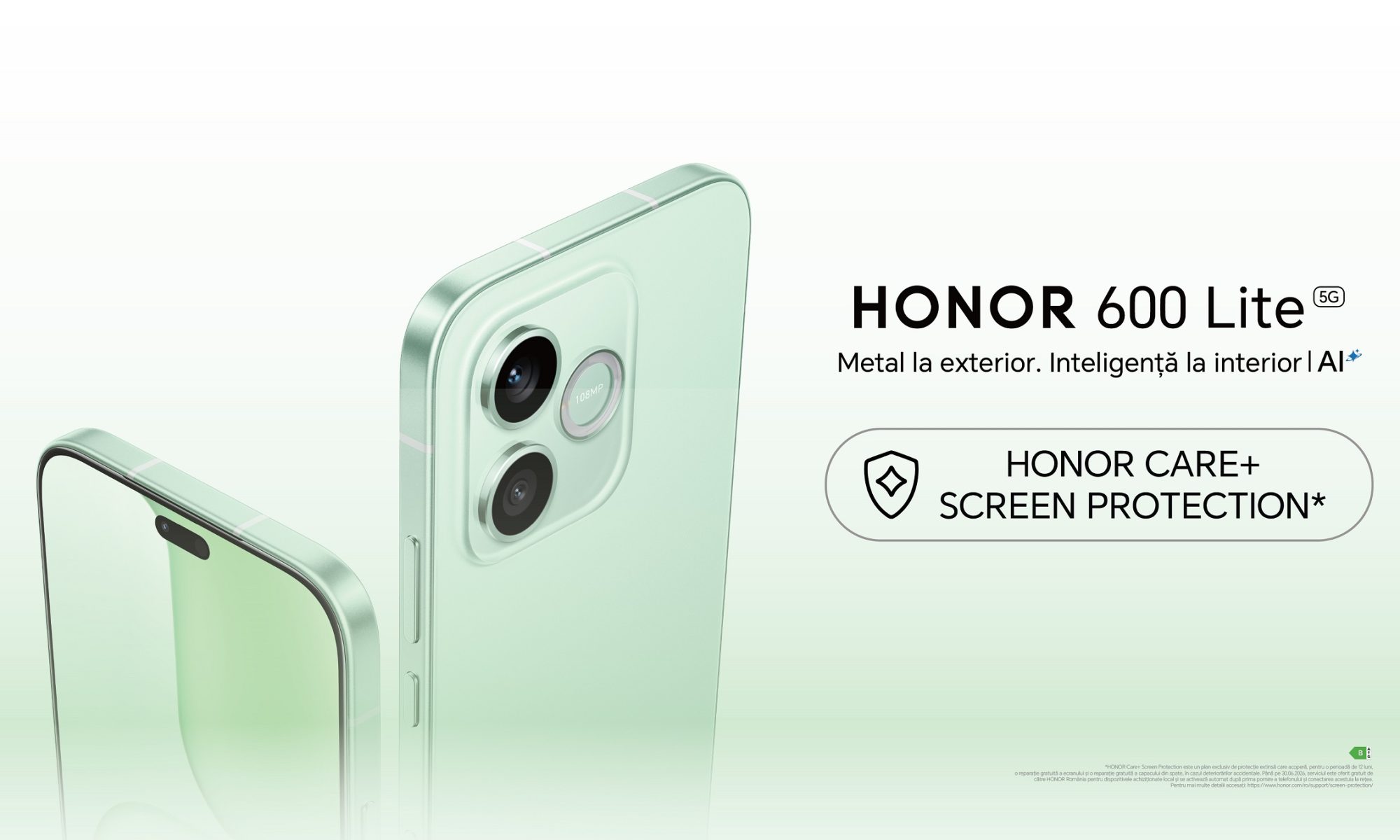 HONOR 600 Lite este disponibil prin partenerii oficiali HONOR în trei variante de culoare: Sprout Green, Velvet Grey și Velvet Black. Până la 30 iunie 2026, utilizatorii beneficiază de HONOR Care+ Screen Protection, un serviciu disponibil pentru dispozitivele achiziționate local și activate în rețea. Serviciul constă în acoperirea unei reparații gratuite, timp de 12 luni de la activare, atât pentru ecran cât și pentru capacul din spate în cazul deteriorărilor accidentale, fără costuri suplimentare pentru piese sau manoperă.